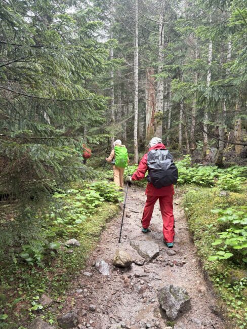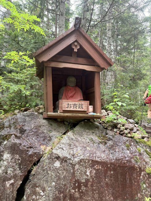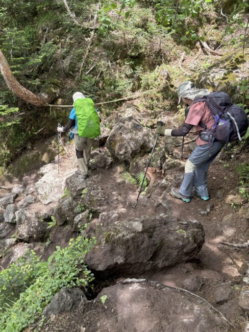 10時頃まで雷注意予報が出ていたので、森林限界に出るまでに過ぎ去ってくれることを願いながら、雨の中を歩き始めた