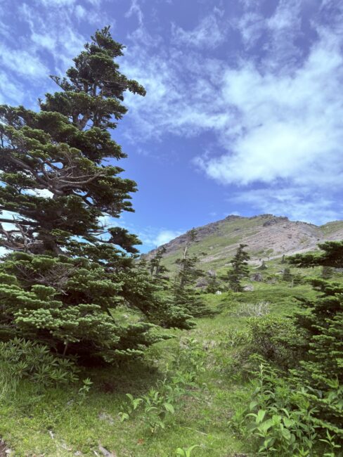 森林限界を抜けるころには、雷の心配もなくなり山頂まであと一息の所まで来た