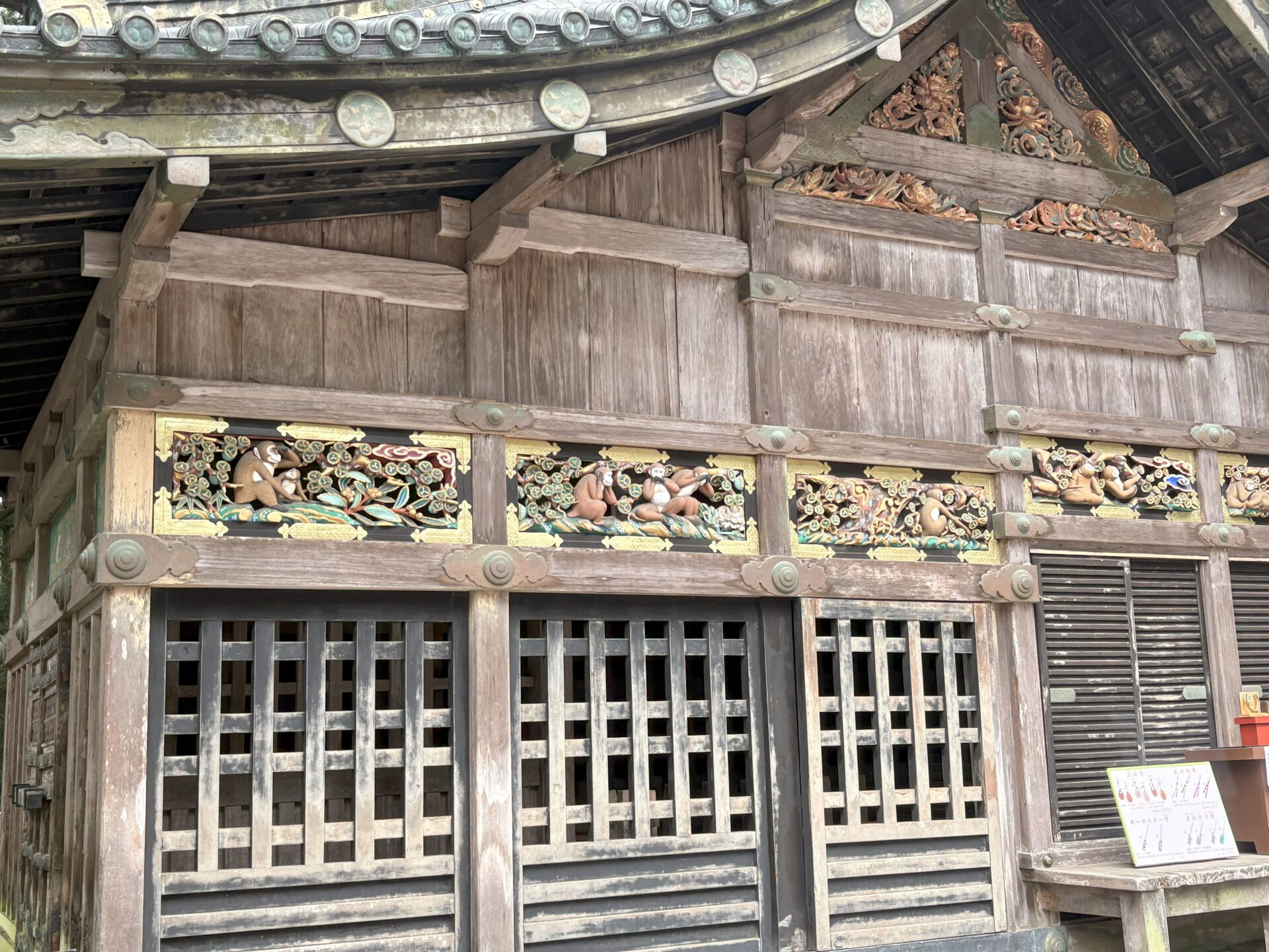 三猿は有名だけど、全部で8面の彫刻からなっているそう