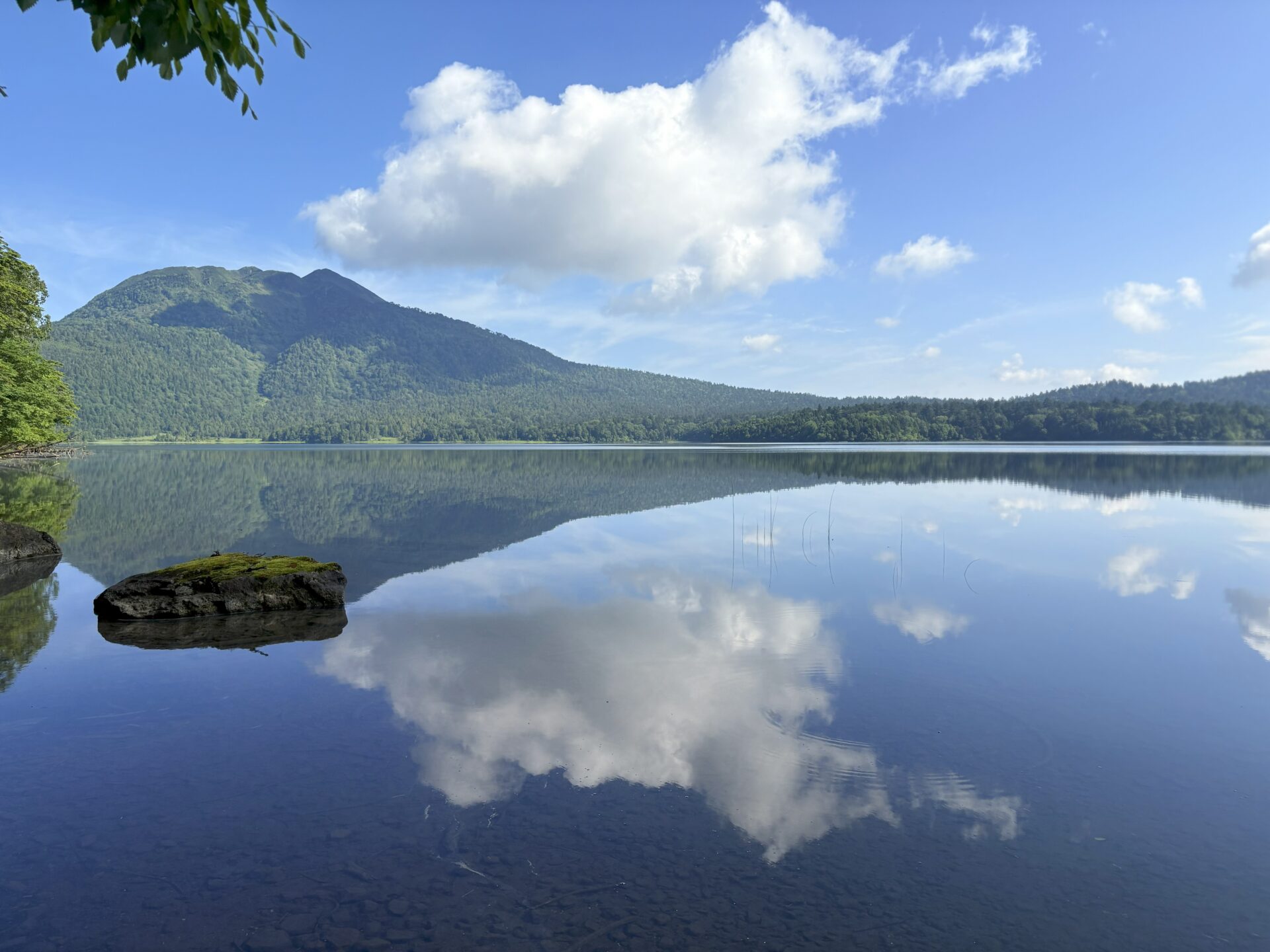 尾瀬沼に浮かぶ燧ヶ岳 ホントに鏡のように穏やかな湖面